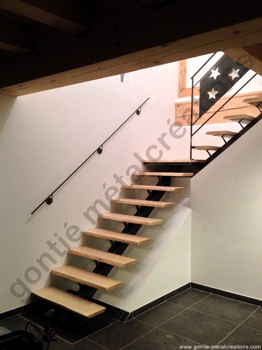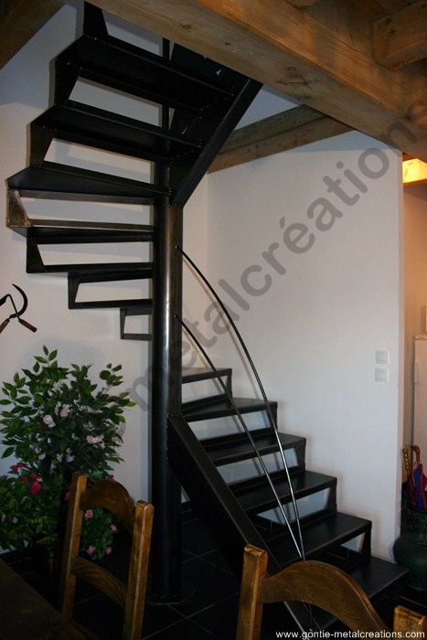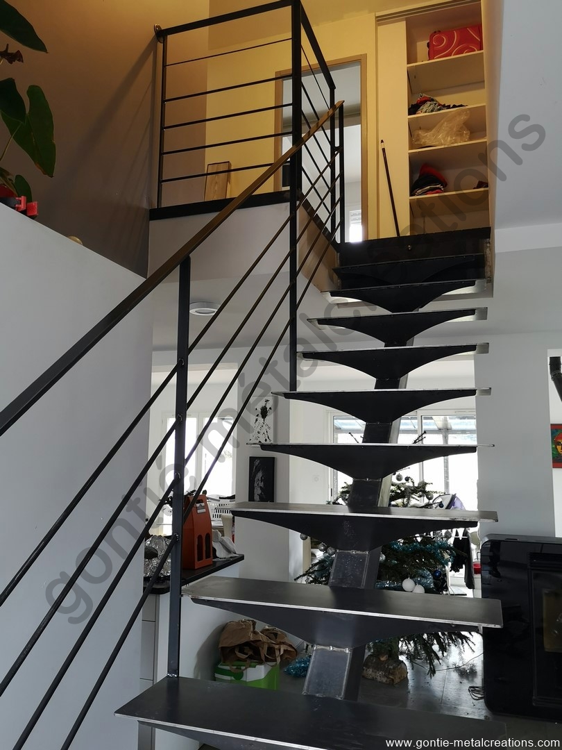 Escalier tout métal, métal et bois, à plateau, quart tournant, limon central, marches déportées, circulaires…